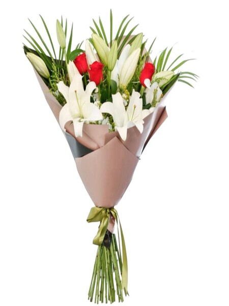 Beyaz Lilyum ve Beyaz Gül Buketi
